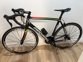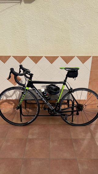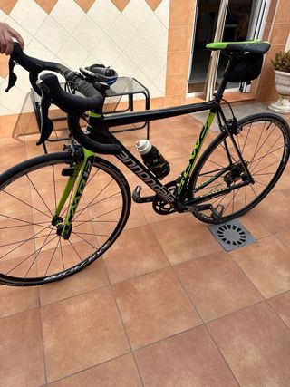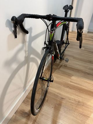 - Talla 50. - Diseño moderno y ligero. - Color negro y verde lima. - Horquilla de carbono - Frenos de zapata - Transmisión Shimano (muy fiable y precisa) - Cambio, desviador, manetas y frenos 105 - Ruedas mavic aksium Siempre guardada en interior y mayormente usada en rodillo