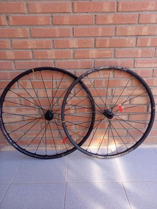 Juego de llantas Mavic Crossride de 29 pulgadas. - Llantas de aluminio. - Ideales para ciclismo de montaña. Es de eje pasante de 12 delantera y 15 trasera Núcleo sram