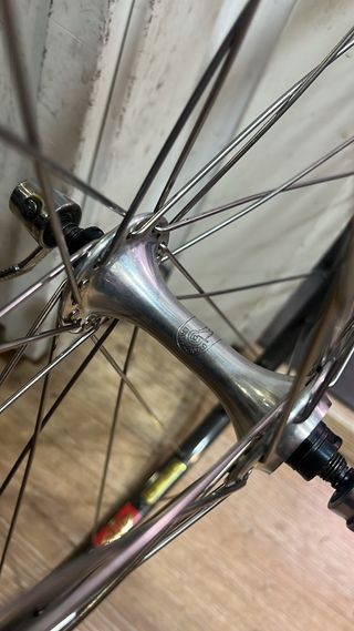 Juego de ruedas clásicas Mavic con bujes Shimano 105. - Llantas de aluminio. - Radios de acero inoxidable. - Listas para montar.