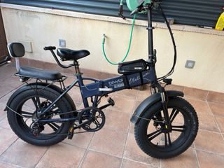 Urbana y todoterreno a la vez. Con sus ruedas fat de 20”, es perfecta tanto para ciudad, arena o nieve. PODEMOS NEGOCIAR EL PRECIO. Horquilla de suspensión Transmisión Shimano de 7 velocidades Pantalla LCD 5 modos de asistencia Fácilmente plegable en 3 partes, incluídos los pedales Llantas de 20" de aleación, no se descentran. Frenos de disco Batería extraíble y portátil Luces frontal y trasera Portabultos y guardabarros incluídos Autonomía de hasta 45 km