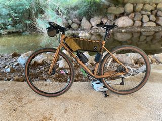 Bicicleta gravel Brother Cycles Mehteh en color arena. Ideal para gravel y viajes. - Cuadro de acero Reynolds. - Horquilla de carbono. - Ruedas de 700cx40 - Frenos de disco. - Transmisión SRAM Apex. Aunque se entregaría una transmisión SRAM Rival adicional. En la última foto se puede ver todos los componentes y también su precio. También entregaría el bolsillo del manillar, también dos cámaras nuevas. Vendo por no estar practicando gravel y haberme centrado en salir solo por carretera. La podría enviar pero lo mejor es verla en persona. La bicicleta talla L, para que se haga una idea yo mido 1'80m.