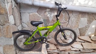 Bicicleta de montaña para niños, ideal para iniciarse en el ciclismo. - Cuadro de color verde lima con detalles azules. - Ruedas de 20 pulgadas. - Incluye portabidón. - Buen estado