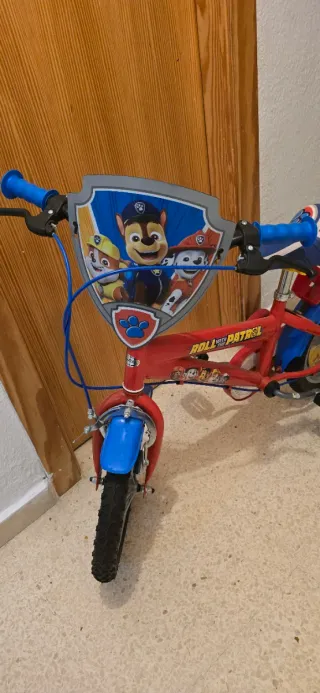 Bicicleta infantil con diseño de la Patrulla Canina, ideal para niños de 2 a 5 años. Perfecta para iniciarse en el mundo de las dos ruedas. - Cuadro de color rojo y azul. - Ruedines no incluidos - Manillar con puños de goma. - Decoración con personajes de la Patrulla Canina. Nueva vale 155 euros.