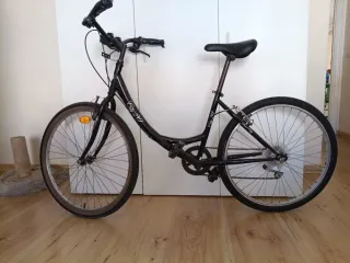 Bicicleta urbana B'Twin modelo 5, original. Ideal para desplazamientos diarios. - Cuadro de aluminio. - Ruedas de 28 pulgadas. - Frenos V-brake. - Portaequipajes trasero. - Guardabarros delantero y trasero. - SE VENDE POR FALTA DE USO: Solo necesita cambiar la camara de una rueda y una de las marchas del plato mediano salta ( se puede arreglar en DECATLÓN o si uno entiende de bicis y es manita ) , se puede ver sin compromiso)