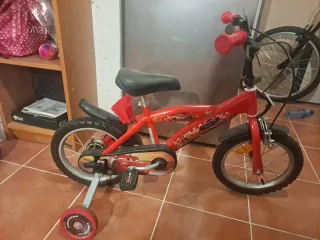 Bicicleta infantil con diseño de Rayo McQueen. - Ruedas de 14 pulgadas. - Incluye ruedines de aprendizaje. - Color rojo con detalles de Cars. Para niños de 4/5 años Bicicleta con uso pero en buenas condiciones Se encuentra en Merida y se puede ver sin problemas