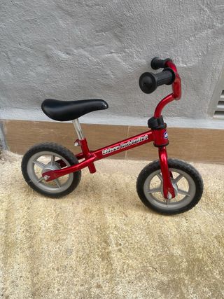 Bicicleta de equilibrio roja de la marca Chicco, modelo Red Bullet. Ideal para que los más pequeños aprendan a mantener el equilibrio. - Marco de metal rojo. - Ruedas de 12 pulgadas. - Sillín negro ajustable.