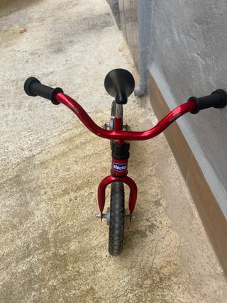 Bicicleta de equilibrio Chicco Red-Bullet en color rojo. Usada solo en un par de ocasiones. - Marco de metal. - Ruedas de goma. - Asiento ajustable. - Se entrega desmontada en su caja original.