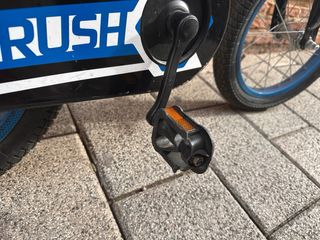 Bicicleta infantil de la marca BERG, modelo Rush, con ruedas de 16 pulgadas. - Color azul con detalles en negro y blanco. - Diseño deportivo. - Ruedas de 16 pulgadas. - Manetas freno delantero y trasero algo arañadas. - Protector de cadena (mayor seguridad). - Guardabarros delantero y trasero. - Cubiertas en buen estado. Presenta signos normales de uso (pequeños roces visibles en las fotos), nada que afecte al funcionamiento. Ideal como primera bicicleta o para seguir ganando confianza 🚴♂️.