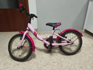 Bicicleta infantil de 16 pulgadas en color rosa B-Pro comprada en el corte inglés. Muy poco uso y tiene los ruedines - Ruedas de 16 pulgadas. - Color rosa. - Diseño infantil.