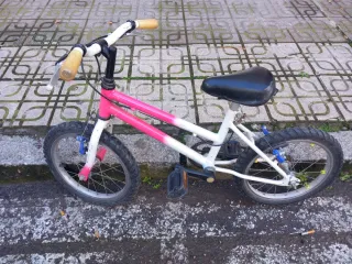 Bicicleta infantil con ruedas de 16 pulgadas, ideal para los más pequeños. - Cuadro de metal resistente. - Diseño en color rosa y blanco. - Puños de goma para un mejor agarre.