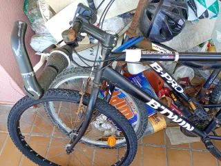 Bicicleta de montaña B-PRO. Y BTWIN para piezas, tiene moho de estar en el balcón, ruedas buenas y chasis para pintar, vendo las 2 juntas. - Cuadro de aluminio. - Ruedas de 26 pulgadas. - Frenos de disco. - Cambio Shimano.