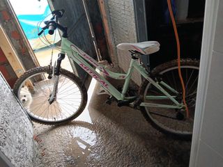 Bicicleta de montaña en color verde brillante, ideal para disfrutar de rutas y caminos. - Cuadro de aluminio. - Suspensión delantera. - Frenos de disco. - Cambio Shimano. El cuadro está perfecto. Las ruedas son nuevas. Frenos y cambios están bien. Quedó fuera unos días y de ahí lo de la cadena. Tiene pequeño enganche en el asiento. Chiclana.