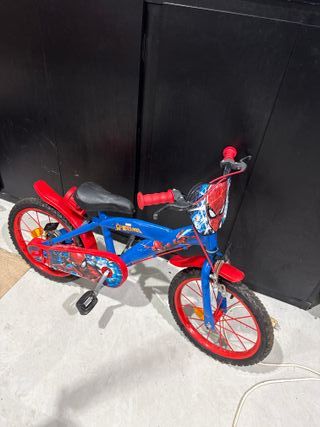 Bicicleta infantil con diseño de Spiderman, ideal para los más pequeños. - Cuadro de color azul. - Detalles en rojo. - Ruedas de 16 pulgadas.