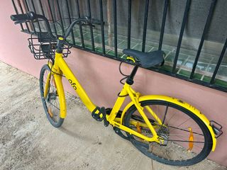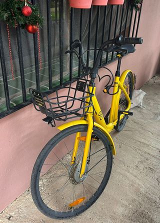 Bicicleta urbana de color amarillo brillante, lista para tus paseos. - Canasta delantera. - Ruedas de 26 pulgadas. - Frenos de disco.