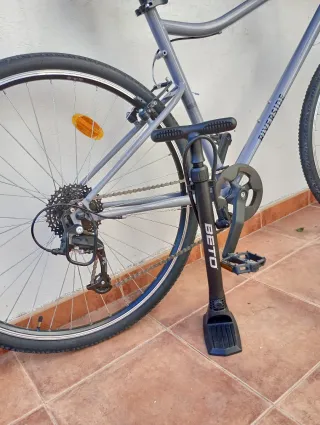 Bicicleta Decathlon Riverside en color gris, en excelente estado. - Modelo Riverside. - Color gris. - Cuadro de aluminio. - Ruedas de 28 pulgadas. La vendo porque me he mudado y no tengo espacio para guardarla. Opcional inflador Beto nuevo por 10 Euros