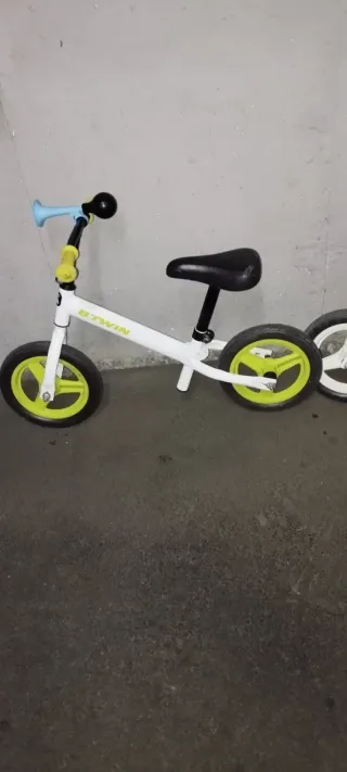 Bicicletas de equilibrio de color rojo para niños. Una roja y otra verde 10 euros cada una - Diseño inspirado en motos. - Ruedas de plástico. - Manillar plateado.