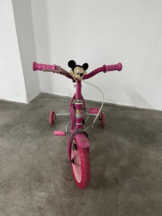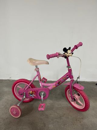 Bicicleta infantil de color rosa, perfecta para los más pequeños. - Diseño con personajes de Disney. - Incluye ruedas de apoyo. - Manillar con figura de Mickey Mouse.