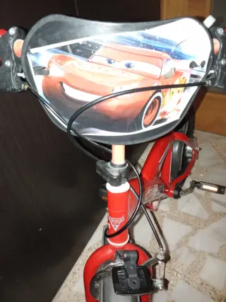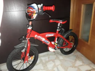 Bicicleta infantil de color rojo con diseño Storm. Ideal para los más pequeños. - Ruedas de 12 pulgadas. - Freno delantero. - Diseño inspirado en Cars. * Cómo nueva, le falta inflar las ruedas y no tiene ruedines *. * No se hacen envíos*.