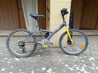 Bicicleta infantil Btwin de 20 pulgadas, ideal para niños. Está en buen estado, aunque muestra señales de uso. - Modelo: Btwin - Tamaño de rueda: 20 pulgadas - Color: Gris y amarillo - Cambio de 5 marchas. - Ruedas prácticamente nuevas. - Incluye timbre. - Funciona todo perfectamente, aunque tiene señales normales de uso. No se envía. Se entrega en Las Rozas de Madrid.