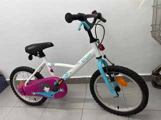 Bicicleta infantil Btwin de 16 pulgadas, ideal para los más pequeños. Su diseño es llamativo y está pensada para la diversión. - Ruedas de 16 pulgadas. - Frenos adaptados para niños. - Sillín con diseño divertido.