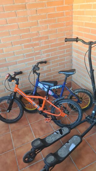 Se vende lote de dos bicicletas infantiles y un patinetes hasta el priximo miercoles - Bicicleta naranja con ruedas de 16 pulgadas. - Bicicleta azul con ruedas de 16 pulgadas. - Patinete plegable negro.