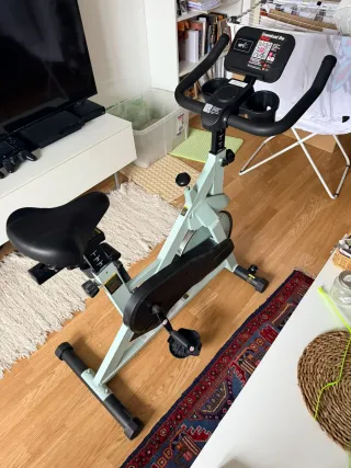Bicicleta estática indoor NUEVA, sin usar y ya montada. Modelo premium, ultra-silenciosa (<25 dB), compacta y estable, ideal para entrenar en casa sin ocupar espacio. Soporta hasta 136 kg, con asiento y manillar ajustables (74‑92 cm). Con conectividad Bluetooth para apps como PitPat, Zwift y FitShow (Android/iOS), que registran distancia, tiempo y rendimiento. Incluye pantalla táctil, soporte para móvil/tablet y ruedas para moverla fácilmente. Resistencia magnética suave y pedales antideslizantes. Valor nuevo 200‑250 €, la vendo por 130 € (negociable). Entrega en mano en León.