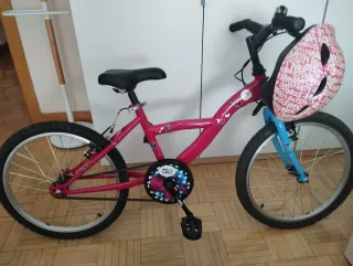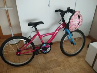 Bicicleta infantil de niña en color rosa, ideal para los primeros paseos. - Ruedas de 20 pulgadas. - Incluye casco a juego con diseño divertido. - Cadena y pedales en perfecto estado.