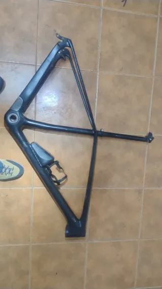 Incluye: - Cuadro de carbono para pedalier de 30mm. Talla L / XL, a partir de 1,80 yo mido 1,77 y es sillín me va como se ve en la foto. Desconozco la marca. La pintura no muy lograda y tiene los roces/desgastes que muestro en la foto, son de hace años y no he notado perdida de rigidez. Entrego con pedalier. - Tija spezialiced. - Portabote+acople herramientas spezialiced. - Rueda trasera Orbea. PRECIO NO NEGOCIABLE. Hago envío, pero prefiero en persona.