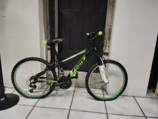Bicicleta KTREME 240 en color negro y verde. - Cuadro de bicicleta. - Ruedas de 24 pulgadas. - Frenos. - Sillín. - Manillar.
