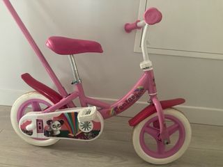 Bicicleta infantil de color rosa con diseño Fantasy. Ideal para niñas. - Ruedas blancas con aro rosa. - Sillín y manillar rosa. - Protector de cadena con dibujo de panda y arcoíris. - Guardabarros delantero y trasero rosa. - Asa para sujeccion Practicamente sin uso