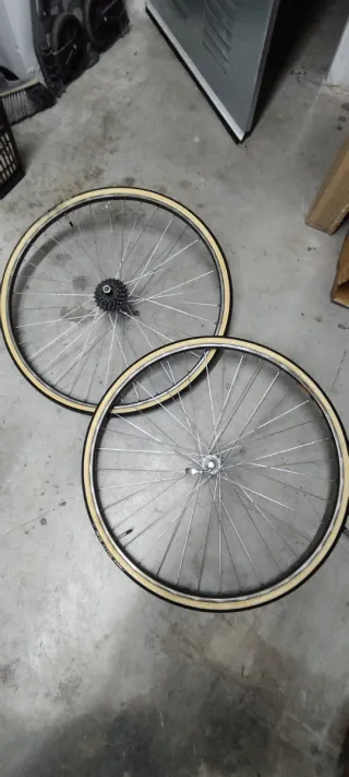 Par de ruedas de carretera WEINMANN fabricadas en aluminio. - Llantas clásicas hechas en Bélgica. - Medidas estándar 16x622 (700c). - Estado: usado con bastantes signos de desgaste. Además de que siguen teniendo suciedad. Un pulido las dejaría brillantes. - Cierres rápidos ASH. - Llantas de aluminio.