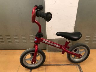 Bicicleta de equilibrio de la marca Chicco, modelo Red Bullet, en color rojo. - Marco de metal. - Ruedas de goma. - Asiento ajustable.