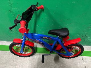 Bicicleta infantil con temática de Spiderman, ideal para los más pequeños. - Color azul principal con detalles en rojo. - Diseño inspirado en Spiderman. - Ruedas de entrenamiento incluidas.