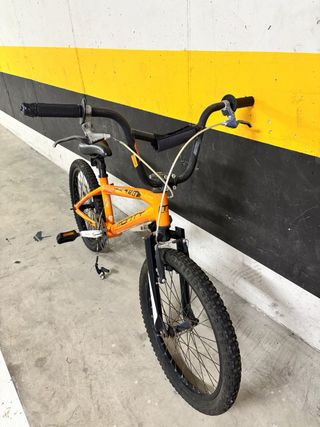 Bicicleta BMX de la marca Monty en color naranja. - Cuadro de BMX.🚲 - Ruedas de 20 pulgadas. - Frenos hace falta arreglo🙃 - Pedales. - Limpia y desinfectada🩺 - Ruedas utilizables🛞