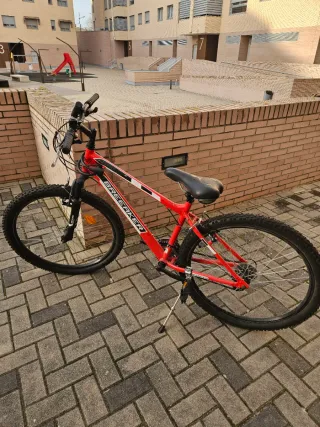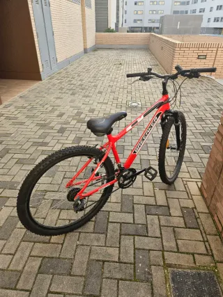 Bicicleta de montaña con un llamativo color rojo. - Cuadro de aluminio - Ruedas todoterreno.26 pulgadas - Manillar negro.