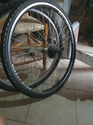 Par de ruedas de bicicleta de 26 pulgadas. - Incluye rueda delantera y trasera. - Listas para montar.