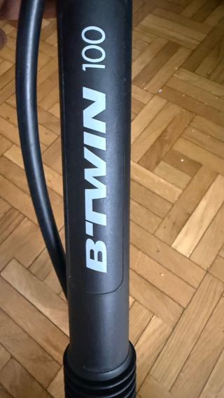 Inflador de mano para ruedas de bicicleta. Compacto y fácil de usar. - Mango ergonómico. - Cabezal con palanca azul.