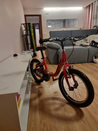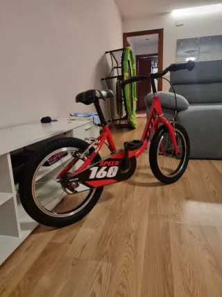 Bicicleta infantil de color rojo con detalles en negro y blanco. Ideal para los más pequeños. - Ruedas de 16 pulgadas. - Diseño deportivo. - Marca DTB SPEED 160. Negociable....