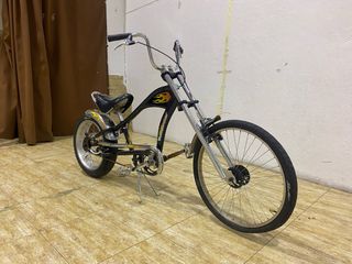 Bicicleta Chopper de coleccionismo con un diseño llamativo - Color negro con detalles de llamas. - Ruedas de gran tamaño. - Asiento cómodo y elevado. - Manillar curvo característico. ➡️-Se acepta Phone como parte de pago preguntar para mas informacion.