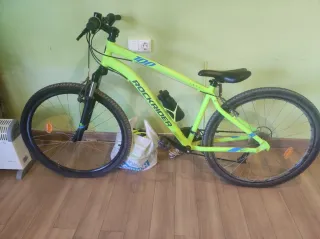 Bicicleta de montaña Rockrider ST500 en color verde lima. Bicicleta nueva poco uso no tiene ningún problema frenos...todo va bien Precio negociable - Cuadro de aluminio. - Ruedas de 27.5 pulgadas. - Frenos de disco. - Cambio Shimano.