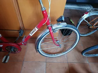 Bicicleta clásica de color rojo, de ha usado para paseos (Pedal izquierdo roto, i tiene la rueda de detrás algo doblada i se frena al girar por lo demás va muy bien ) PRECIO NO NEGOCIABLE