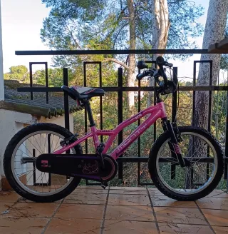 Bicicleta infantil de color morado con detalles en azul. - Muy poco usada - Ruedas de 20 pulgadas. - Frenos delanteros y traseros. - Sillín ajustable.