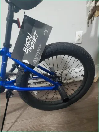Bicicleta BMX de color azul, lista para rodar. - Cuadro de acero resistente. - Ruedas de 20 pulgadas. - Pedales de plataforma. - Manillar de 360 grados.