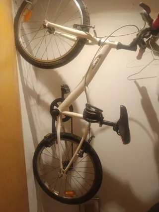 Bicicleta infantil BTWIN en color blanco y azul. - Ruedas de 14 pulgadas (hay que cambiarlas porque esta petada) - Pedales naranjas. - Sillín negro.