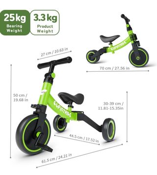 Bicicleta de aprendizaje para niños de la marca Chicco. - Color verde brillante. - Diseño Green Rocket. - Ruedas negras.
