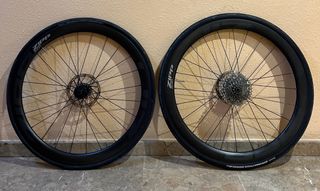 Juego de ruedas ZIPP 303S para bicicleta. - Modelo ZIPP 303S. - Llanta de carbono. - Perfil de 45mm. - Compatibles con frenos de disco. - Tubelles - Buje HG ( Shimano ) - tienen muy poco uso y las vendo por ponerle otras con mas perfil