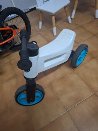 Se pueden poner 3 ruedas (2 detras y 1 alante) o 2 ruedas (1 y 1) y que sea de equilibrio. Tambien tiene una cuerda para colgarla o para tirar de la bici