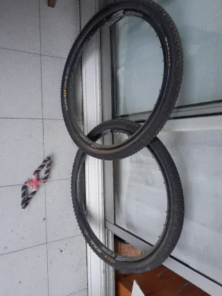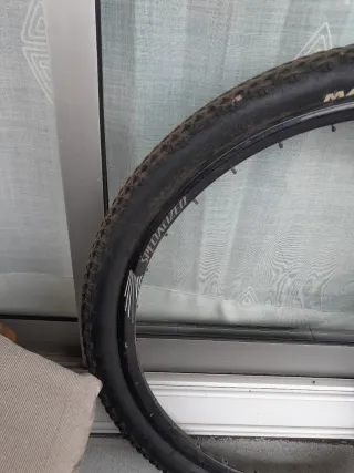 Se venden llantas y neumáticos de rueda de 26 pulgadas. - Marca Specialized. - Neumático delantero Larsen TT. - Neumático trasero DT Swiss Mezcal.