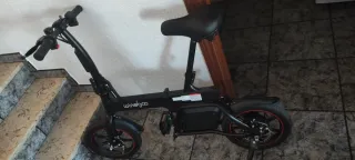 Bicicleta eléctrica plegable en color negro. Ideal para desplazamientos urbanos. necesita cambiar la cámara de aire. - Marco de aluminio. - Ruedas de 14 pulgadas. - Batería extraíble. - Frenos de disco.