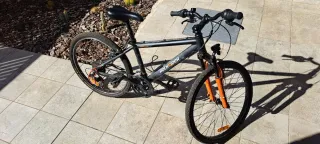 Bicicleta de montaña infantil Rockrider ST100 como nueva, ideal para iniciarse en el ciclismo. - Cuadro de acero. - Ruedas de 20 pulgadas. - Frenos V-Brake. - Incluido caballete